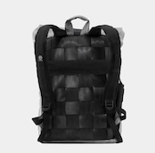 車のエアバッグとシートベルトの廃材をアップサイクルして作られたバックパック。